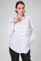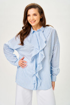 Укороченная блузка с пышными рукавами-фонариками выполнена из легкого хлопкового поплина. Супатная застежка на пуговицы из натурального перламутра. Внизу кулиса с лентами из основного полотна. В изделии будет комфортно, даже в самое жаркое время года. Подходит для любой фигуры. Сочетается в костюме с кюлотами D24.233 и юбкой D26.179