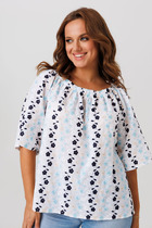 Укороченная блузка с пышными рукавами-фонариками выполнена из легкого хлопкового поплина. Супатная застежка на пуговицы из натурального перламутра. Внизу кулиса с лентами из основного полотна. В изделии будет комфортно, даже в самое жаркое время года. Подходит для любой фигуры. Сочетается в костюме с кюлотами D24.233 и юбкой D26.179