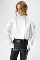 Совместные покупки Пермь Женская одежда Блузки, рубашки — Vilatte Блузка из стаина с коротким рукавом D29.276 натуральный белый