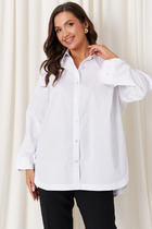 Блузка прилегающего силуэта выполнена из формоустойчивого хлопка. Фишкой изделия служат парные контрастные пуговицы. На спинке фирменный металлический логотип бренда. Изделие хорошо держит форму, подчеркивает силуэт и подходит для любой фигуры. Идеальный вариант для респектабельных образов в деловом стиле.