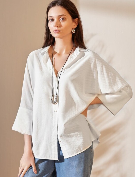 Vilatte Блузка с цельнокроеным рукавом 3/4 из эластичного хлопка D29.323 белый