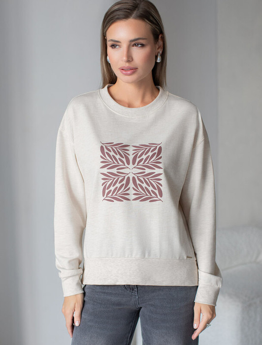 Совместные покупки Пермь Женская одежда Джемперы, свитеры, водолазки — Vilatte Джемпер D49.137 бежевый меланж_листья