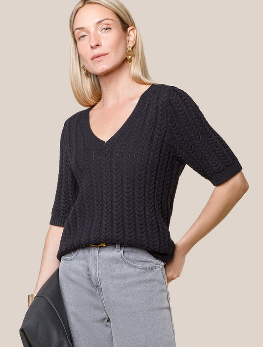 Vilatte Джемпер фактурной вязки из хлопка с кашемиром D39.349 черный