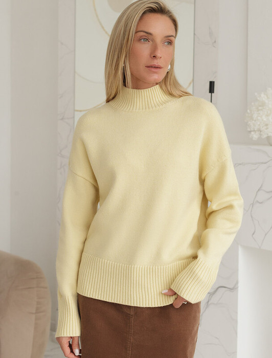 Совместные покупки Пермь Женская одежда Джемперы, свитеры, водолазки — Vilatte Джемпер из пряжи с кашемиром D34.202 светло-желтый