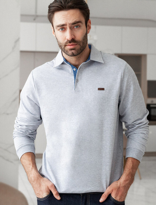 Джемпер с воротом поло выполнен из эластичного футера. Застежка планка дополнена пуговицами с логотипом бренда. Мягкий и плотный материал хорошо пропускает воздух, а наличие ПЭ в составе способствует формоустойчивости и легкости изделия. На груди фирменная нашивка из эко-кожи.