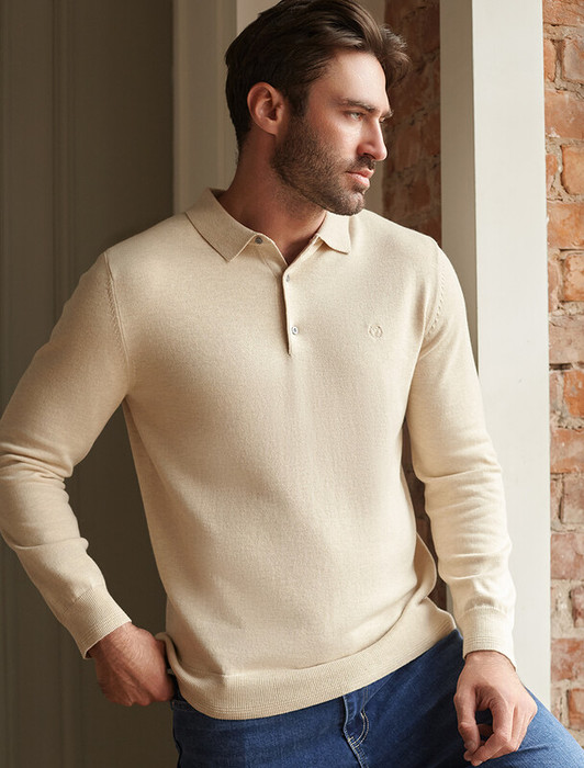 Vilatte Джемпер-поло из хлопка с нейлоном U39.017 бежевый меланж