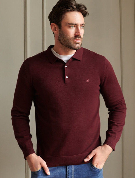 Заказать Vilatte Джемпер-поло из хлопка с нейлоном U39.017 бургунди