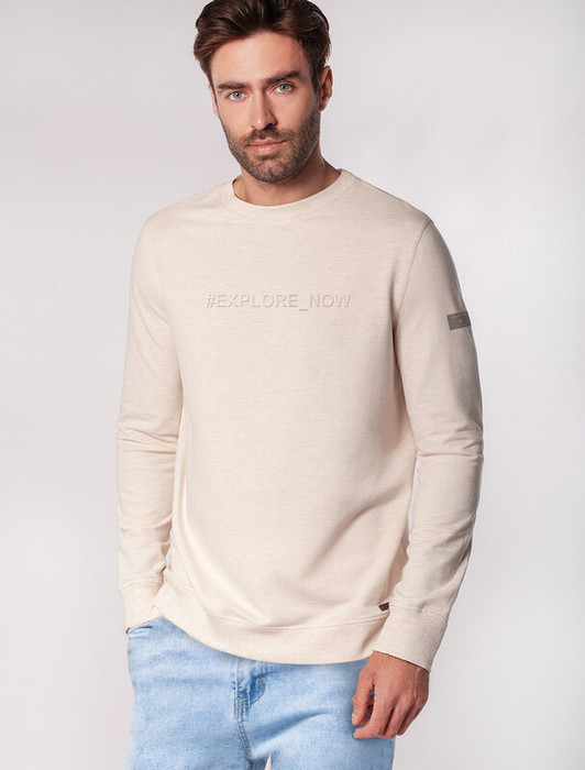 Совместные покупки Пермь Мужская одежда Джемперы, свитеры — 27.03 Vilatte Джемпер с авторским принтом из легкого футера U49.014 бежевый мел