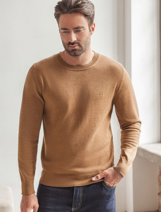 Совместные покупки Пермь Мужская одежда Джемперы, свитеры — Vilatte Джемпер с круглым воротом из хлопка с нейлоном U39.014 коричневый меланж