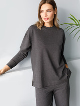 В синем цвете ткань немного толще, чем голубой и черный цвета. Свободные штанины вверху, заужаются к низу, делая силуэт стройнее, открывая нижнюю часть лодыжки.