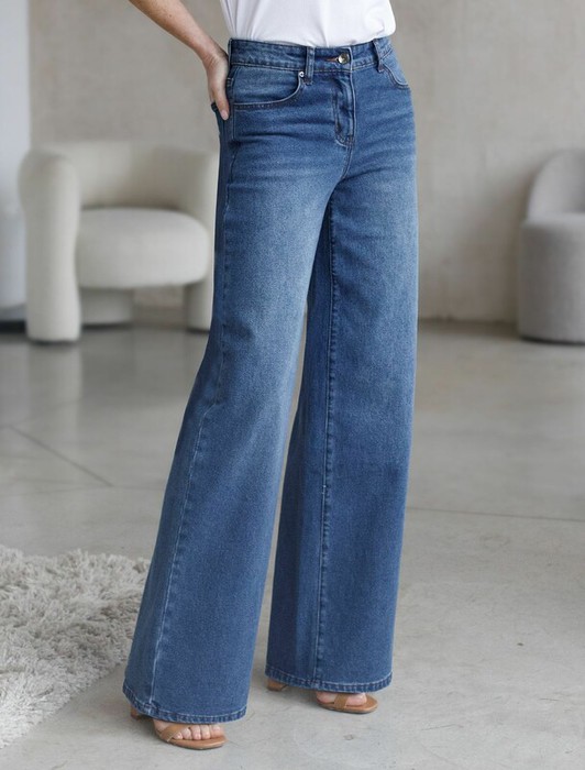 Стильные джинсы трубы синего цвета цвета прямого кроя выполнены из эластичного денима плотностью 12,3 OZ, что делает их особенно удобными для повседневной носки. Джинсы правильного кроя визуально вытягивают силуэт, благодаря эластану в составе аккуратно садятся на любую фигуру, подчеркивая достоинства и обеспечивают максимальный комфорт в течение дня, не сковывая движения. Широкая размерная линейка подходит для разных типов фигур: свободные джинсы комфортны как для обладательниц пышных форм, так и для худеньких. Вы сможете подабрать джинсы на низкий или высокий рост. Джинсы идеально держат форму даже при активном движении и не вытягиваются после долгой носки. Качественная надежная фурнитура делает эти джинсы премиальными.