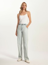 Стильные джинсы трубы синего цвета прямого кроя выполнены из эластичного денима, что делает их особенно удобными для повседневной носки. Декоративная стирка добавляет современный акцент и подчеркивает современный дизайн. Джинсы правильного кроя визуально вытягивают силуэт, благодаря эластану в составе аккуратно садятся на любую фигуру, подчеркивая достоинства, а обеспечивают максимальный комфорт в течение дня, не сковывая движения. Широкая размерная линейка подходит для разных типов фигур: свободные джинсы комфортны как для обладательниц пышных форм, так и для худеньких. Вы сможете подабрать джинсы на низкий или высокий рост. Плотные джинсы идеально держат форму даже при активном движении и не вытягиваются после долгой носки. Качественная фурнитура, практичные карманы и контрастная строчка делают эти джинсы премиальными. Широкий подгиб добавляет актуальности — такой тренд отлично сочетается как с обувью на каблуке, так и на плоском ходу. Благодаря универсальному дизайну джинсы легко комбинируется с разными