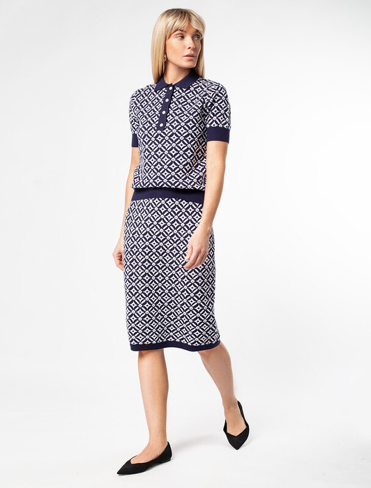 Vilatte Эластичная юбка из поливискозы жаккардовой вязки D36.015 синий-белый