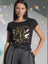 Совместные покупки Пермь Женская одежда Футболки — Vilatte Футболка D49.134 черный_листики