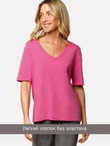 Vilatte Футболка из 100% хлопка с V-образным вырезом D49.091 розовая фуксия