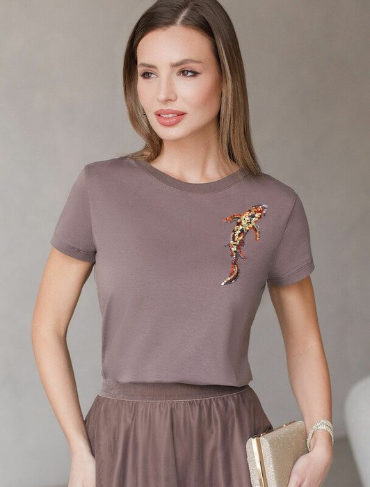 Совместные покупки Пермь Женская одежда Футболки — Vilatte Футболка D49.135 кофейный_рыба