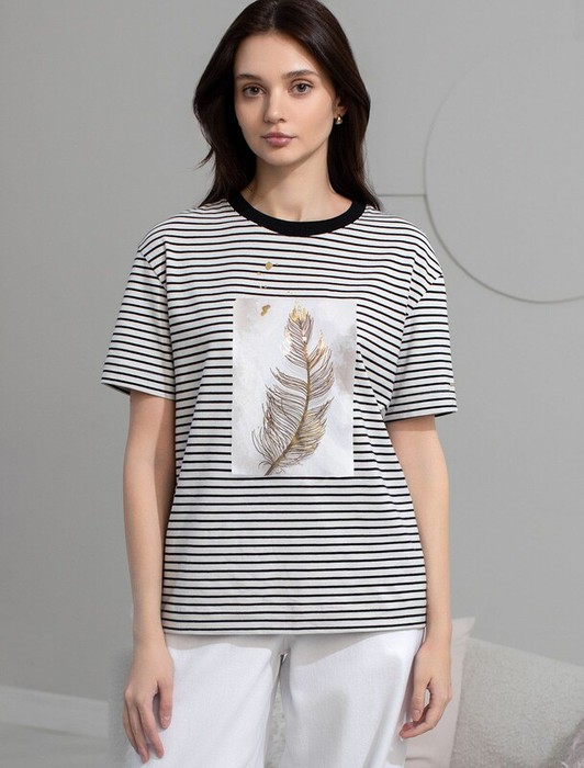 Совместные покупки Пермь Женская одежда Футболки — Vilatte Футболка D49.145 белый-черный_перо