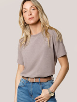 Vilatte Футболка из премиального хлопка с авторским принтом D49.110 кофейный мел