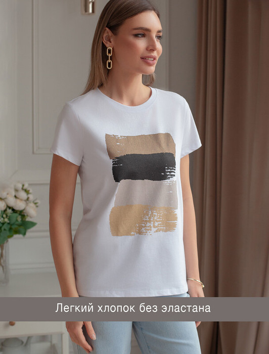 Совместные покупки Пермь Женская одежда Футболки — Vilatte Футболка из 100% хлопка с авторским принтом. D49.092 белый_art