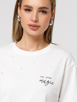 Базовая модель свободного кроя c V-вырезом легко впишется в повседненвый гардероб. Изделие хорошо держит форму и обеспечивает комфортный микроклимат в течение дня.