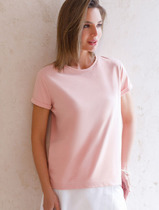 Футболка выполнена из премиального хлопка с эластаном. Лаконичный принт выполнен россыпью сияющих страз в тон изделия. Модель среднего объема дополнена подворотами на рукавах. Подходит для любого типа фигуры. Изделие дополнено металлическим логотипом бренда.