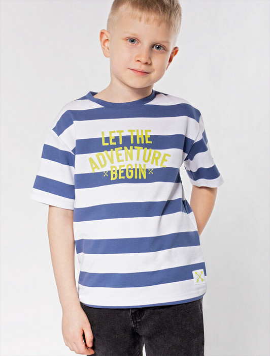 Совместные покупки Пермь Детская одежда Футболки, майки — Vilatte Футболка из фактурного трикотажа с авторским принтом M49.407 св.синий_бе