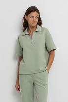 Футболка с цельнокроеным рукавом выполнена из премиального хлопка. Базовая однотонная модель идеально впишется в любой гардероб. V-вырез подчеркивает ключицы и удлиняет шею, хорошо сочетается с жакетами или кардиганами. Изделие дополнено металлическим логотипом бренда.