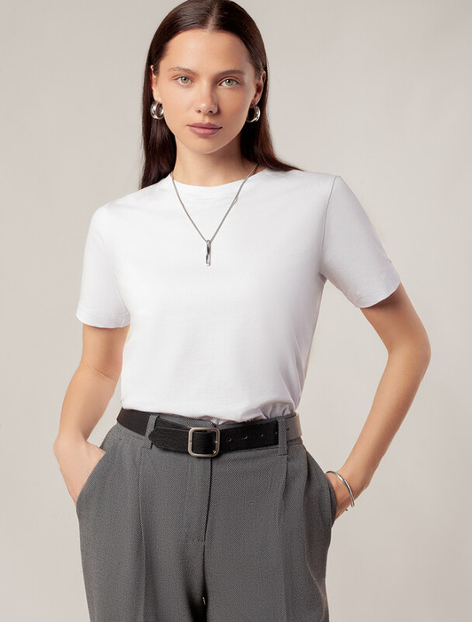 Футболка выполнена из премиального хлопка.Принт "леопард" нанесен фактурными красками с устойчивым покрытием. Наличие эластана в составе гарантирует комфорт и формоустойчивость. Изделие дополнено фирменным металлическим логотипом бренда.