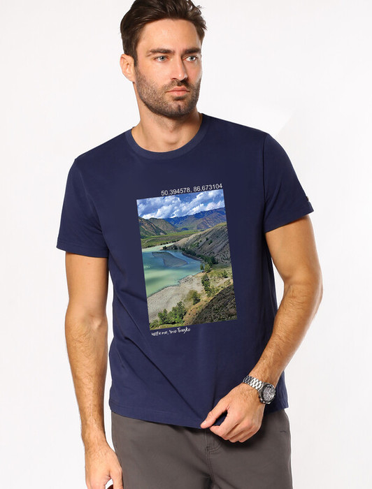 Совместные покупки Пермь Мужская одежда Футболки — Vilatte Футболка из премиального хлопка с авторским принтом U49.026 темно-синий_