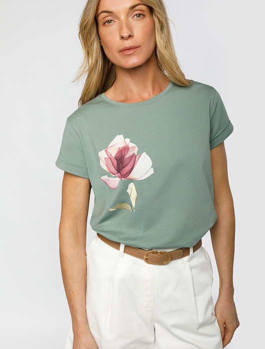 Совместные покупки Пермь Женская одежда Футболки — Vilatte Футболка из премиального хлопка с эластаном D49.097 св.оливковый_цветок