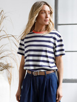 Совместные покупки Пермь Женская одежда Футболки — Vilatte Футболка из премиального хлопка с эластаном D49.989 белый-т.синий полоса