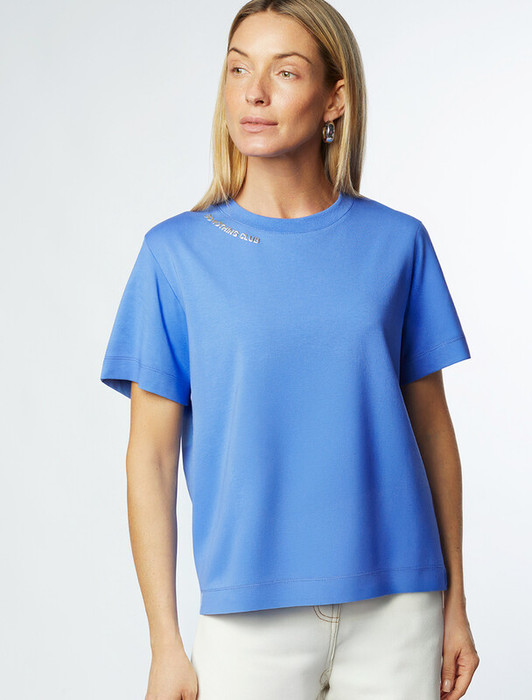 Vilatte Футболка из премиального хлопка с принтом фольгой D49.098 васильковый_do