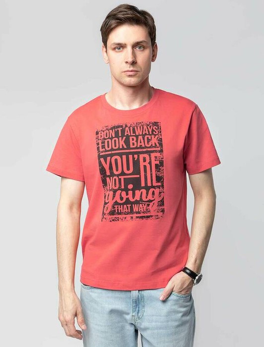 Совместные покупки Пермь Мужская одежда Футболки — Vilatte Футболка из премиального хлопка с принтом U49.004 коралловый_dont_look_b