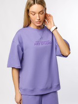 Футболка свободного кроя со спущенным плечом выполнена из футера двухнитки с эластаном. Лаконичный принт нанесен фактурной краской. Эластичный материал гарантирует комфорт и формоустойчивость. Сочетается в костюме с брюками D44.138, D44.139 и шортами D48.008. Изделие дополнено металлическим логотипом бренда.