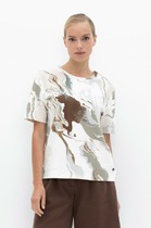 Футболка выполнена из трикотажа в широкий рубчик. Приятная к телу хлопковая ткань с гладкой трикотажной фактурой. Вырез каре подчеркивает изящество фигуры с акцентом на декольте и поддерживает силуэт. Лучшее решение для комплектов с акцентом на талию с объемными низами – палаццо, кюлотами или пышными юбками. Изделие украшено фирменным логотипом бренда.