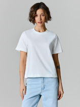 Футболка выполнена из трикотажа в широкий рубчик. Модель с квадратным вырезом дополнена декоративными пуговицами. Эластичный хлопковый трикотаж сидит по фигуре, не сковывает движений и очень комфортный в носке. Фактура вертикальных полос визуально стройнит и вытягивает силуэт. Базовое изделие хорошо впишется в любой гардероб. Идеально подходит для многослойных образов.
