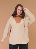 Совместные покупки Пермь Женская одежда Толстовки — Vilatte Худи на молнии из премиального футера трехнитки с начесом D49.062 охра