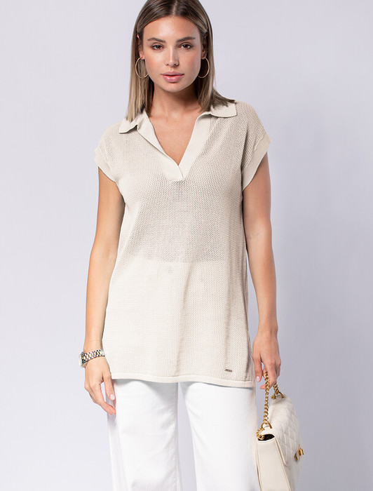 Vilatte Летнее полупрозрачное поло тончайшей вязки D33.009 натуральный_белый