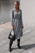 Платье прямого силуэта фактурной вязки выполнено из хлопка с добавлением кашемира.