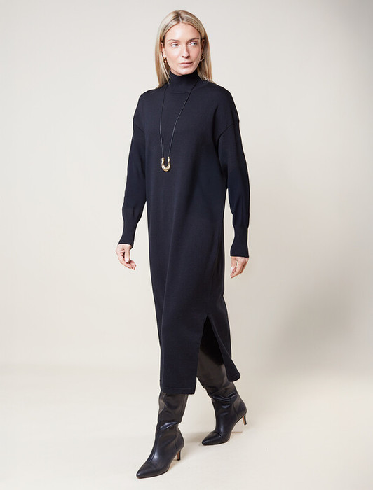 Vilatte Платье тонкой вязки из хлопка с нейлоном D32.106 черный