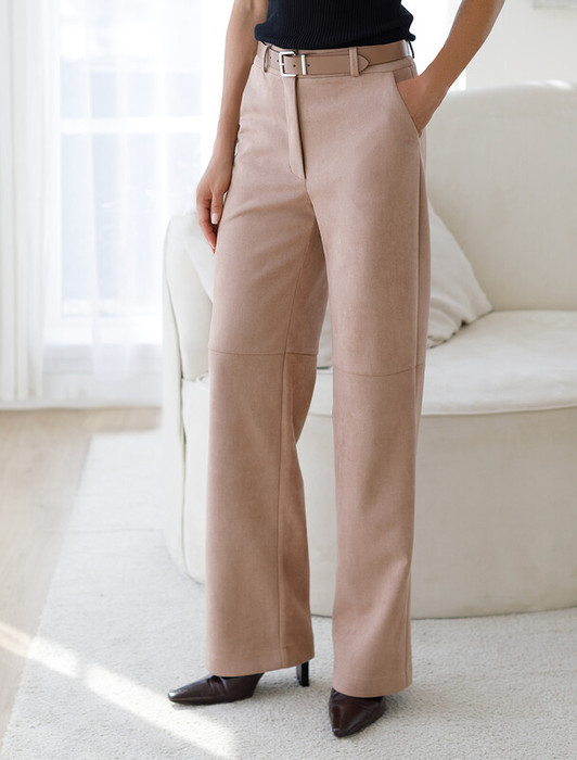 Совместные покупки Пермь Женская одежда Брюки — Vilatte Прямы брюки из искусственной замши D24.239 светло-бежевый