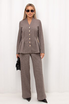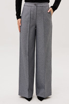 Прямые брюки выполнены из трикотажа джерси. Модель дополнена боковыми карманами и поясом на резинке сзади. Заутюженные стрелки визуально вытягивают силуэт. Изделие хорошо держит форму, отлично тянется и почти не мнется во время использования. Идеальный вариант в офис или в повседневный классический стиль.