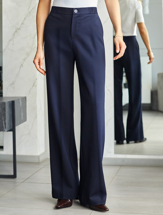 Совместные покупки Пермь Женская одежда Брюки — Vilatte Прямые брюки из джерси на резинке сзади D44.147 темно-синий