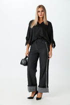 Прямые джинсы выполнены из эластичного денима плотностью 17 oz. Удлиненная модель синего цвета с контрастными строчками. Комфортная посадка на талии подходит для любой фигуры, ткань хорошо тянется и не сковывает движений. На поясе сзади расположен нашивка из эко-кожи с логотипом бренда. Длина изделия позволяет выбрать к образу обувь на каблуке