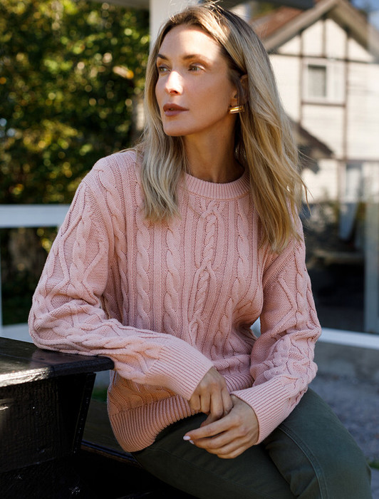Vilatte Свитер фактурной вязки с узором косы D39.330 пудровый