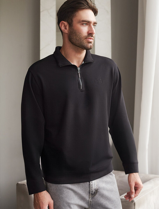 Совместные покупки Пермь Мужская одежда Джемперы, свитеры — Vilatte Свитшот с воротом стойкой на молнии из эластичного футера двухнитки U49.