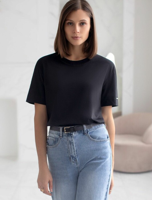 Совместные покупки Пермь Женская одежда Футболки — 27.03 Vilatte Свободная футболка из премиального хлопка с эластаном D49.144 чер