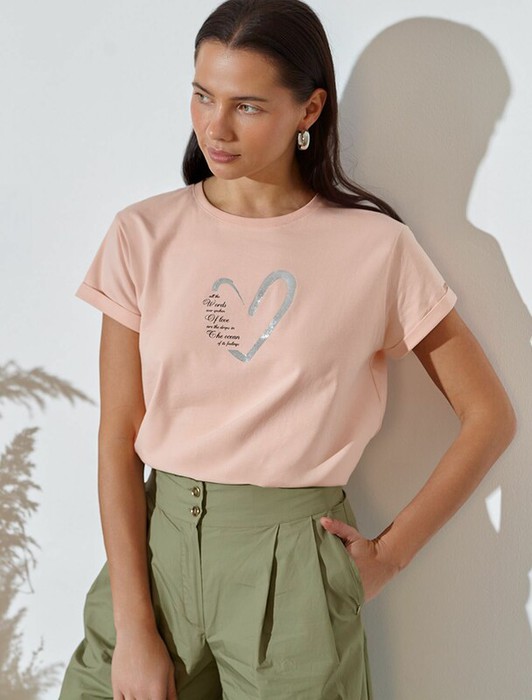 Совместные покупки Пермь Женская одежда Футболки — Vilatte Свободная футболка с принтом из премиального хлопка с эластаном D49.146