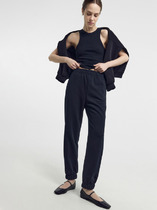 Брюки свободного кроя выполнены из эластичного футера-двухнитки. Модель дополнена защипами и боковыми карманами как у классических брюк и одним задним карманом. Эластичный пояс на резинке с шнурком из репсовой ленты и металлической фурнитурой. Брюки сочетаются в костюме с футболкой D49.031, D49.085, бомбером D49.038 и паркой D49.075