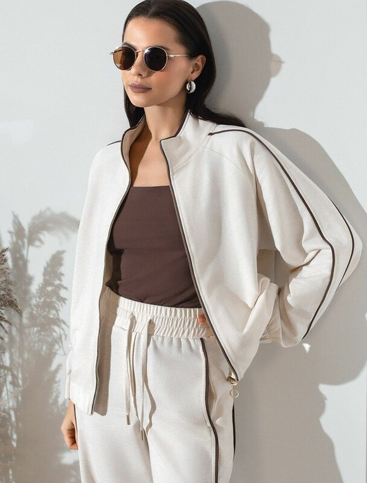 Свободный бомбер темно-синего цвета на молнии выполнен из премиального футера двухнитки плотностью 240 Г/м2. Натуральный состав обеспечивает хорошую воздухопроницаемость, мягкость и приятные тактильные ощущения, Эластичный материал олимпийки позволяет свободно двигаться без лишнего стеснения, а также отлично сохраняет форму даже после длительного ношения. Манжеты на рукавах и резинка по низу обеспечивают надежную посадку, сохраняя тепло в прохладную погоду. Повседневный бомбер отличается универсальной длиной, которая идеально подходит для повседневного и спортивного образа. Контрастные лампасы на рукавах придают образу динамику и визуально вытягивают силуэт, делая модель актуальной. Прорезные карманы по бокам добавляют функциональности, сохраняя при этом стильный внешний вид. Представленная размерная линейка позволяет подобрать оптимальный вариант для любой фигуры и размера, на маленький или плюс сайз, обеспечивая идеальную посадку без компромиссов по стилю. Эта зипка на молнии станет отличным дополнением к